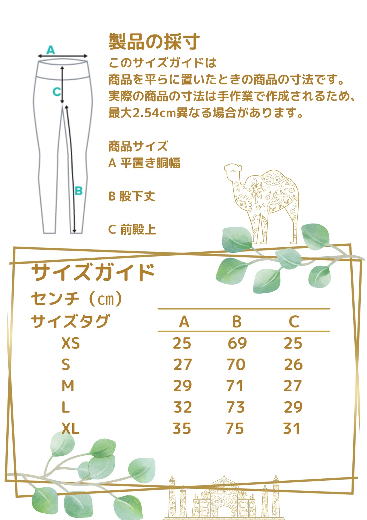 ・レギンスなどヨガウエアはフリーサイズと記載がないものは全てサイズを選択頂けます。1点1点ご予約後に制作する為購入後のサイズの変更は出来かねます。